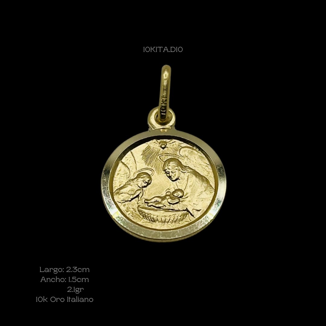 Medalla de 10k Italiano con diseño de bautizo. Medidas: 2.3cm de largo y 1.5cm de ancho. Gramaje: 2.1gr. Precio sujeto a las cotizaciones diarias del oro.