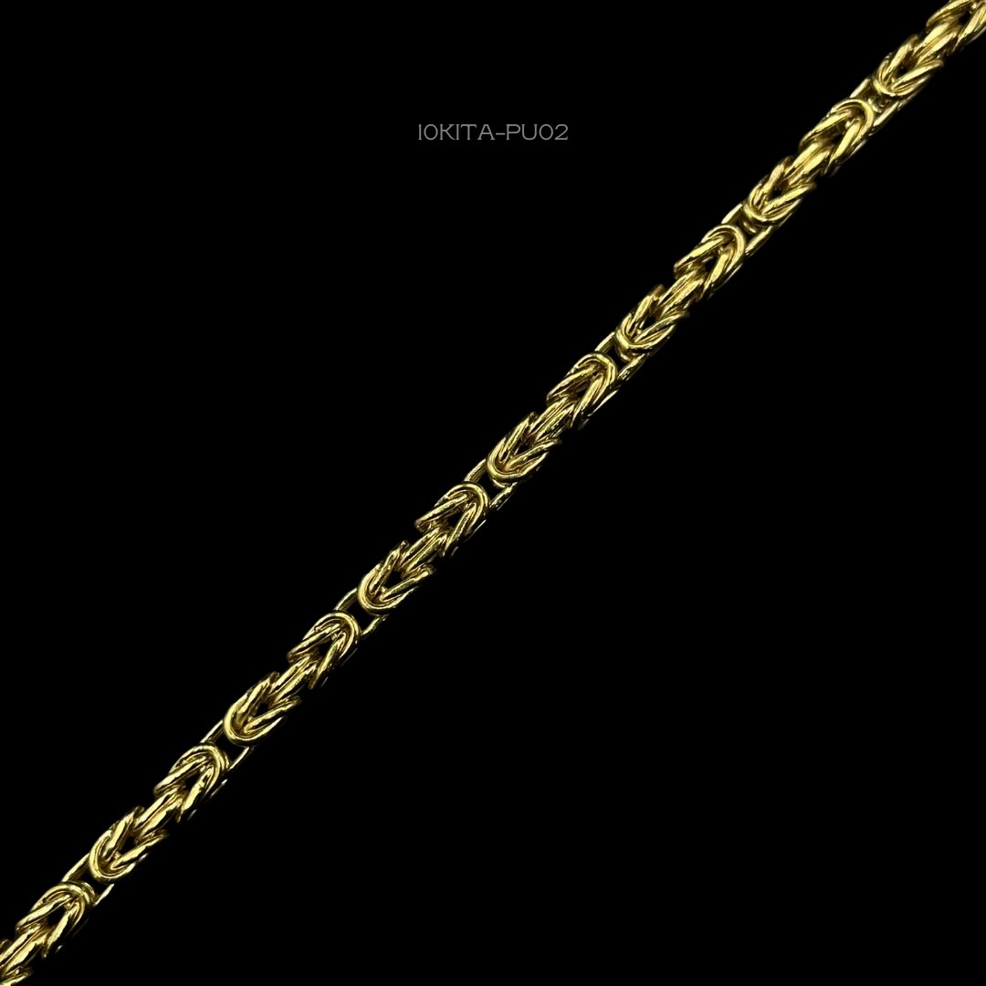 Pulso de 10k Italiano de tejido bizantino. Medidas: 21cm de largo y 3mm de ancho. Gramaje: 4.7gr. Precio sujeto a las cotizaciones diarias del oro.