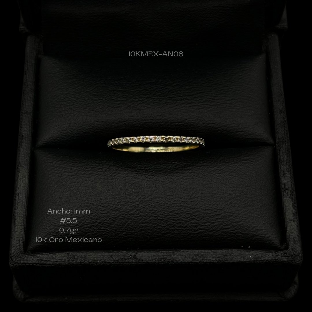Anillo de 10k Mexicano en oro amarillo con diseño de churumbela. Medidas: 1mm de ancho en #5.5. Gramaje: 0.7gr. Precio sujeto a las cotizaciones diarias del oro.