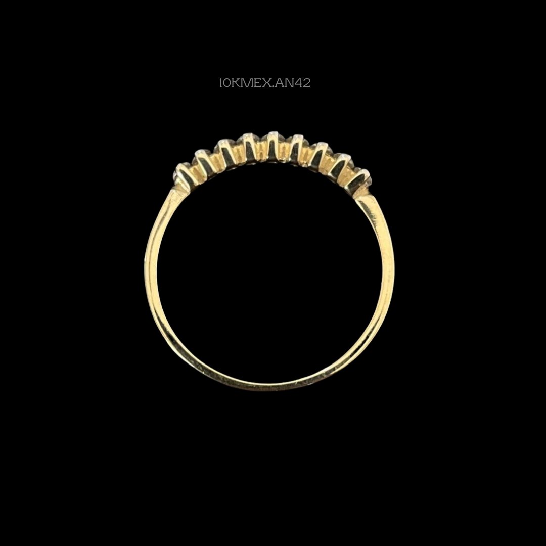 Churumbela de 10k Mexicano en oro amarillo de zirconia sobre saltada. Medidas: 3mm de ancho en #8 1/2. Gramaje: 2.1gr. Precio sujeto a las cotizaciones diarias del oro.
