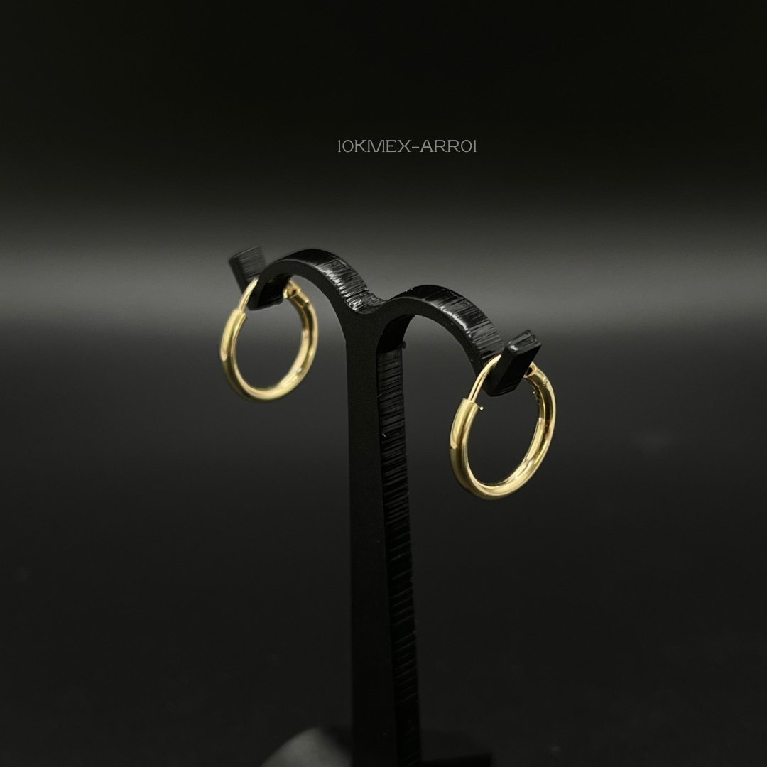 Arracadas de 10k Mexicano en oro amarillo con diseño liso. Medidas: 1.4cm de largo y 2mm de ancho. Gramaje: 0.7gr. Precio sujeto a las cotizaciones diarias del oro.