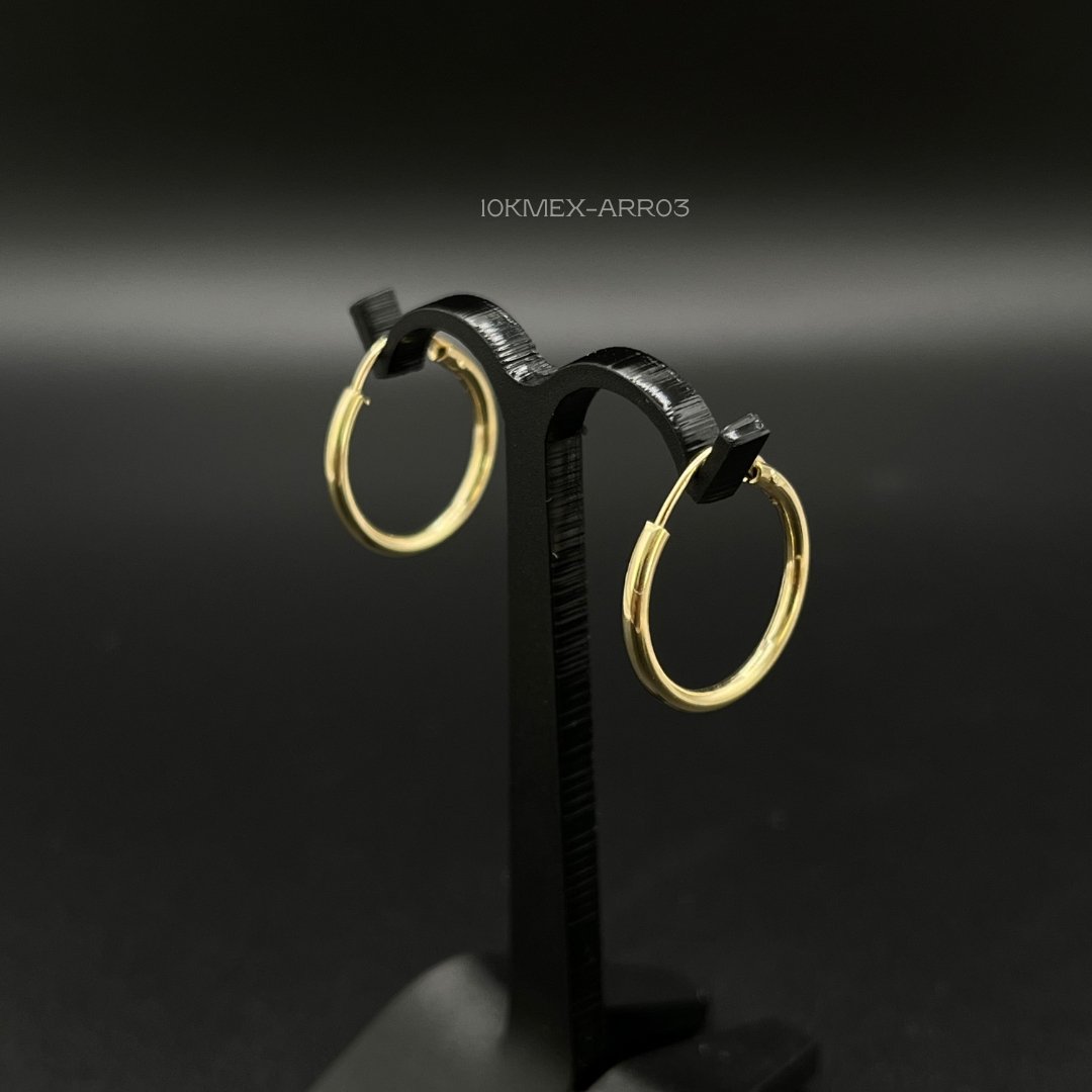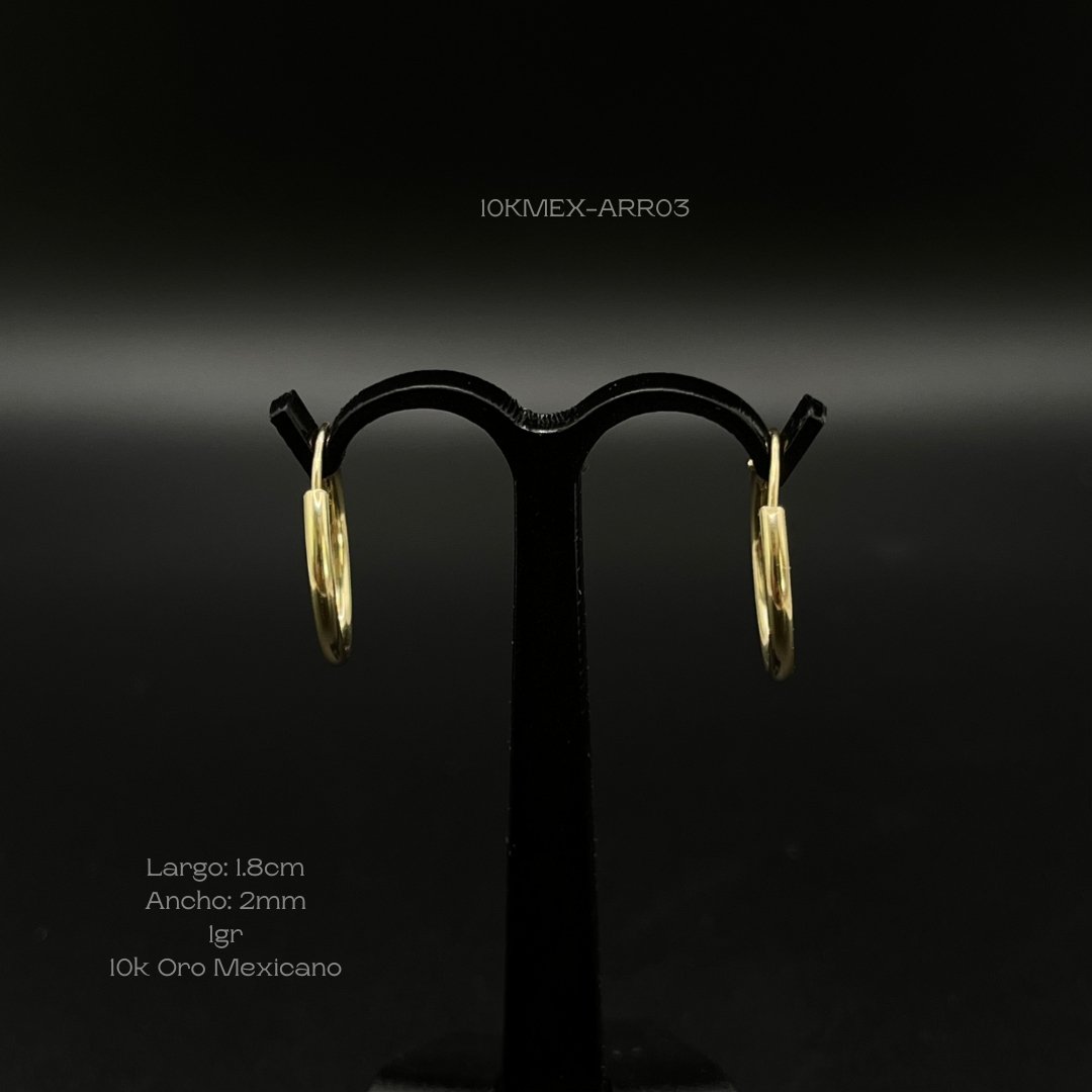 Arracadas de 10k Mexicano en oro amarillo con diseño liso. Medidas: 1.8cm de largo y 2mm de ancho. Gramaje: 1gr. Precio sujeto a las cotizaciones diarias del oro.