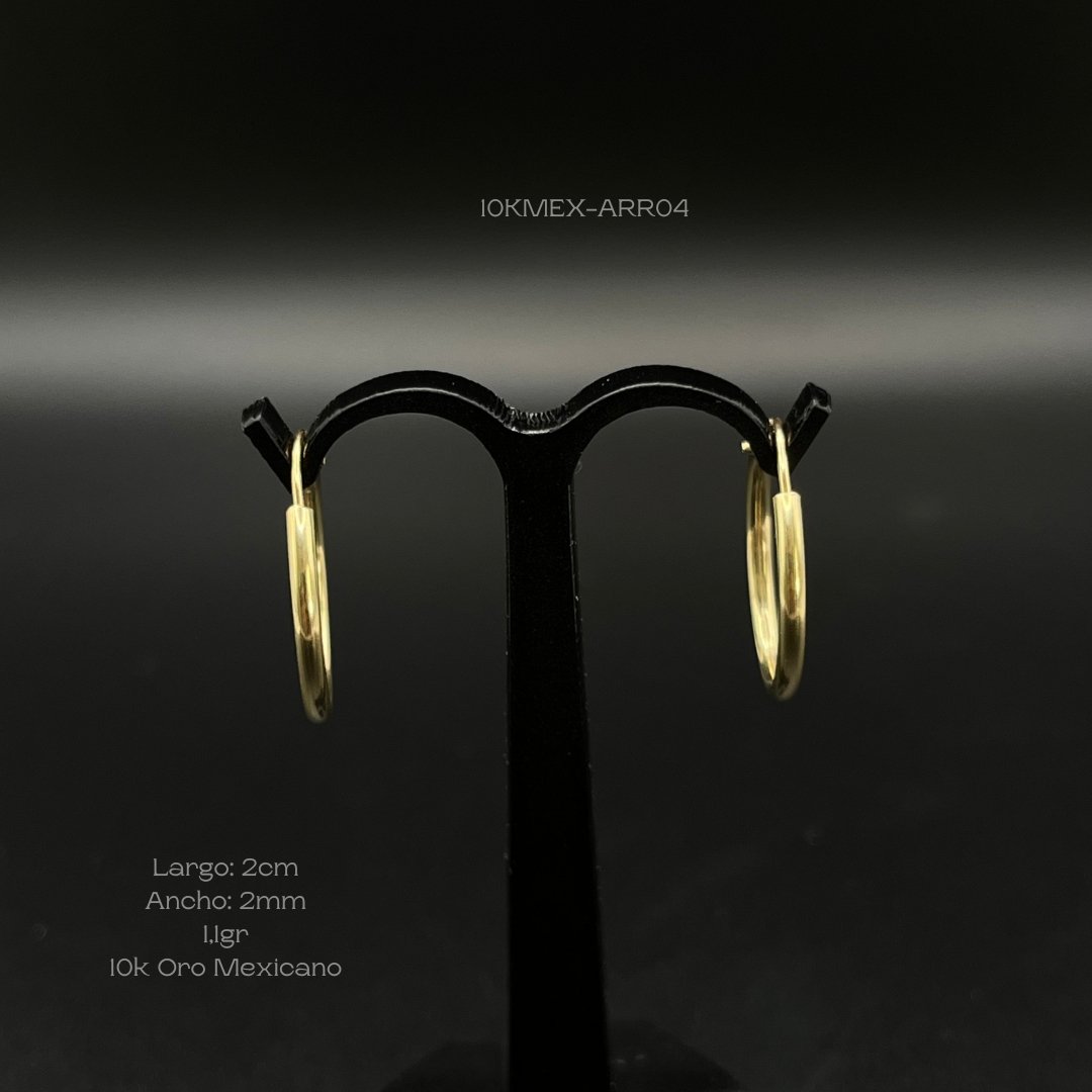 Arracadas de 10k Mexicano en oro amarillo con diseño liso. Medidas: 2cm de largo y 2mm de ancho. Gramaje: 1.1gr. Precio sujeto a las cotizaciones diarias del oro.