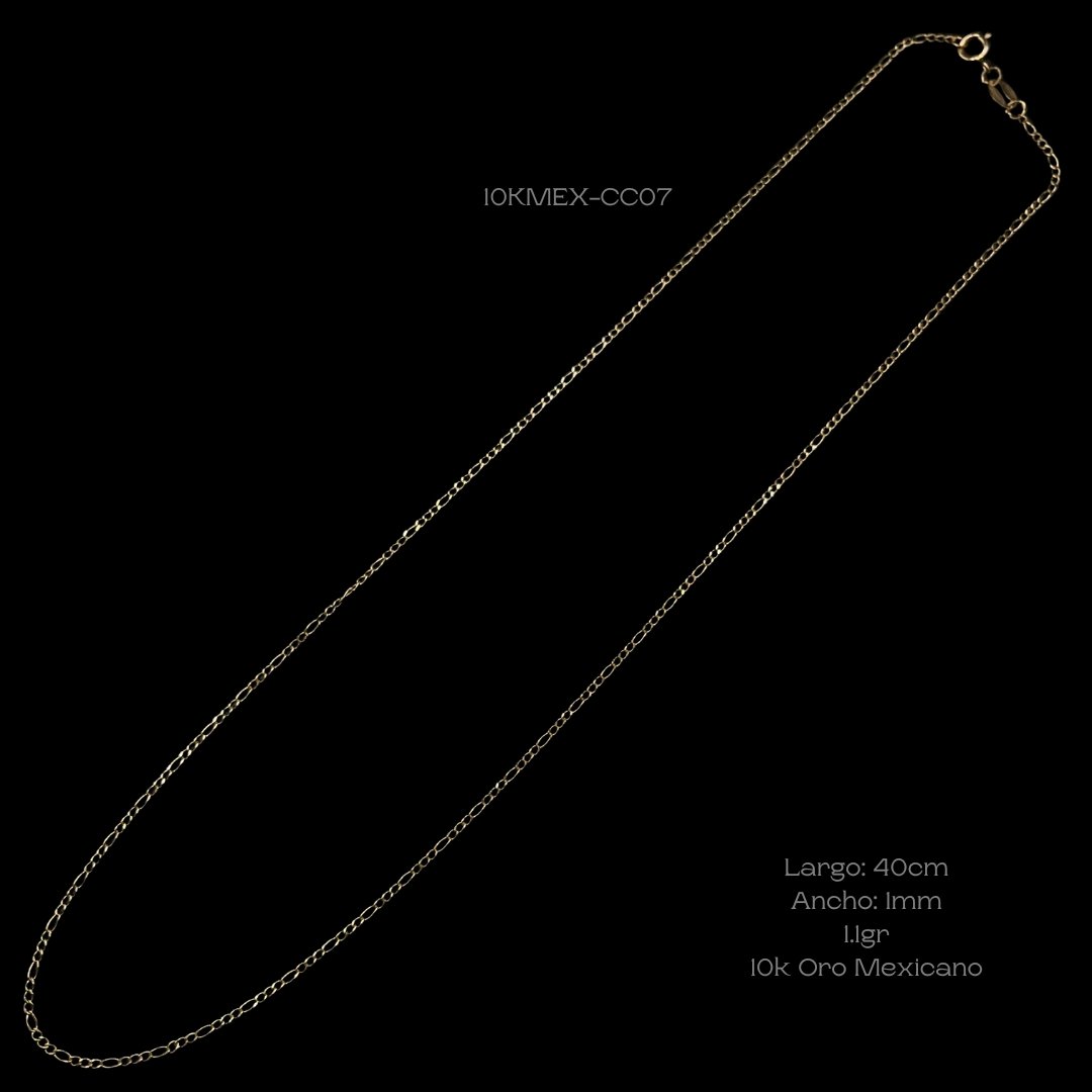 Cadena de 10k Mexicano de tejido cartier. Medidas: 40cm de largo y 1mm de ancho. Gramaje: 1.1gr. Precio sujeto a las cotizaciones diarias del oro.