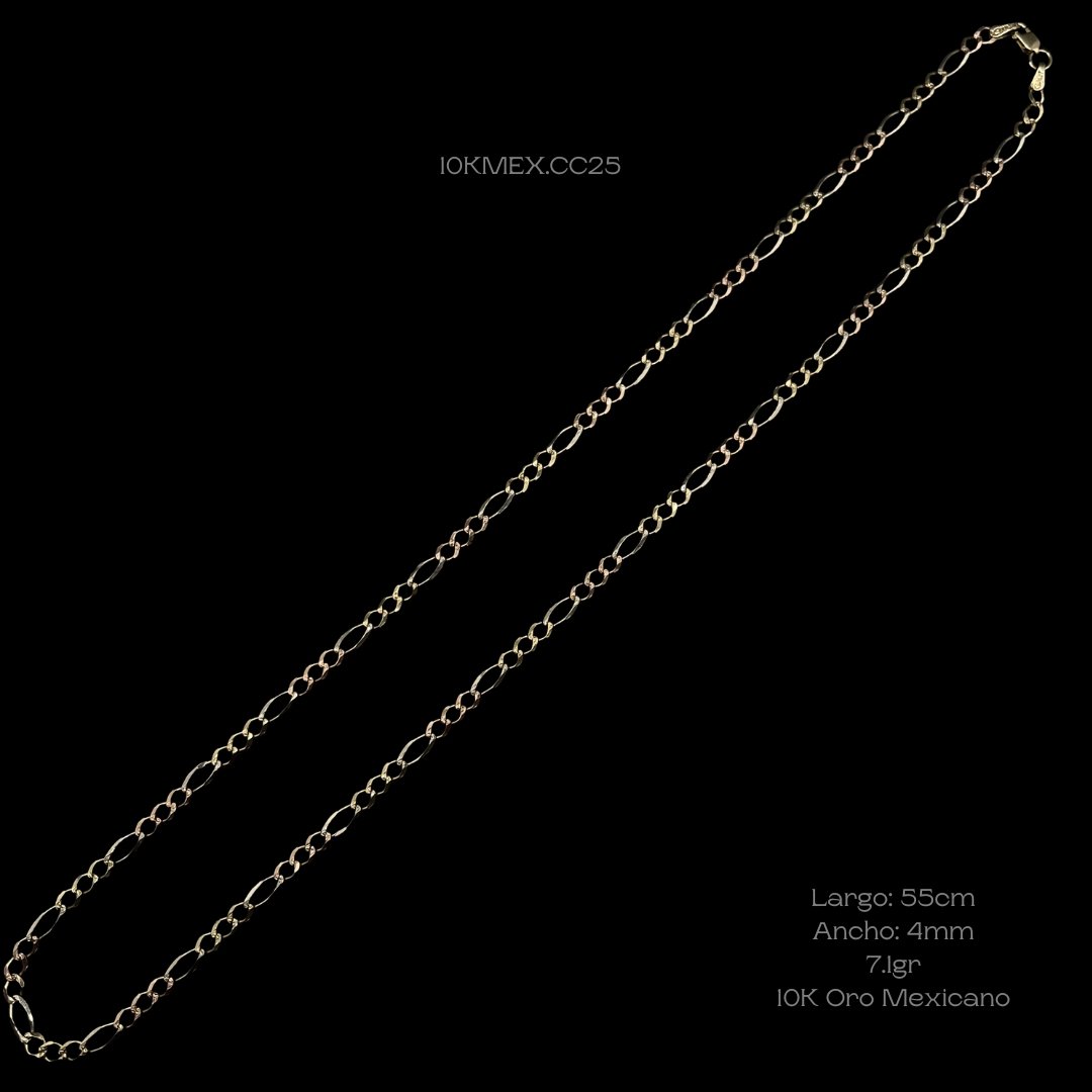 Cadena de 10k Mexicano de tejido Cartier diamantado en oro florentino. Medidas: 55cm de largo y 4mm de ancho. Gramaje: 7.1gr. Precio sujeto a las cotizaciones diarias del oro.