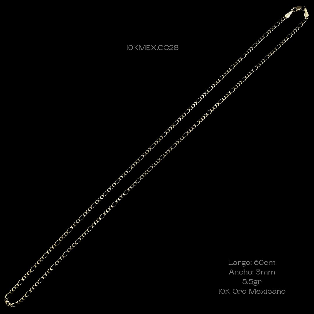 Cadena de 10k Mexicano de tejido cartier. Medidas: 60cm de largo y 3mm de ancho. Gramaje: 5.5gr. Precio sujeto a las cotizaciones diarias del oro.