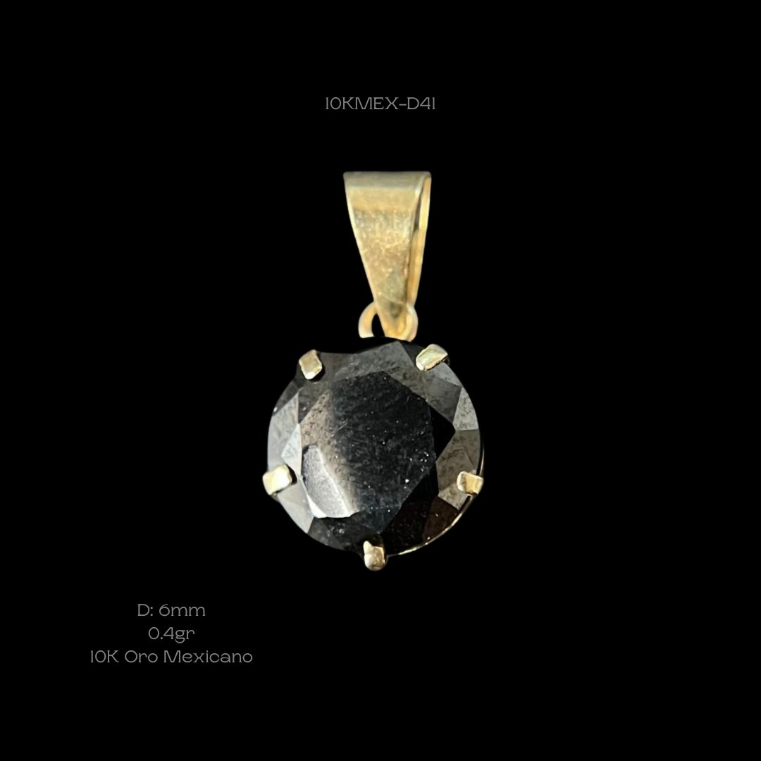 Dije de 10k Mexicano zirconia color negro. Medidas: 6mm de diámetro. Precio sujeto a las cotizaciones diarias del oro.