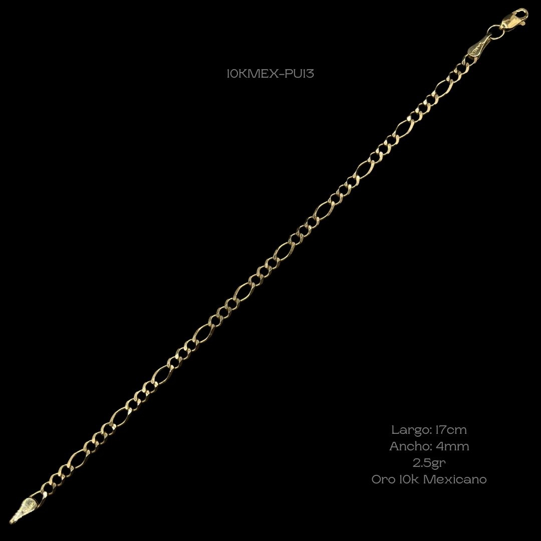 Pulso de 10k Mexicano de tejido cartier. Medidas: 17cm de largo y 4mm de ancho. Gramaje: 2.5gr. Precio sujeto a las cotizaciones diarias del oro.