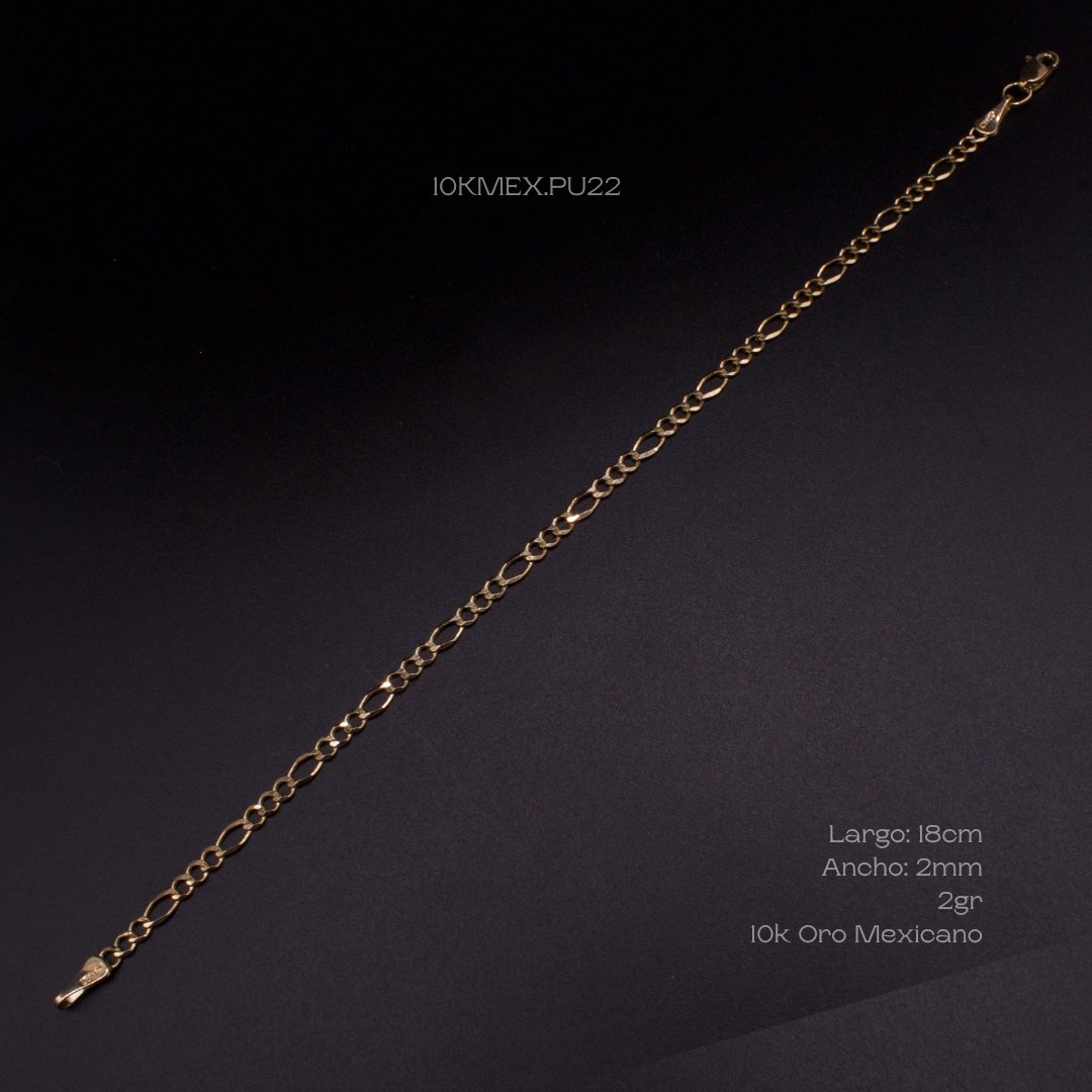Pulso de 10k Mexicano de tejido cartier. Medidas: 18cm de largo y 2mm de ancho. Gramaje: 2gr. Precio sujeto a las cotizaciones diarias del oro.