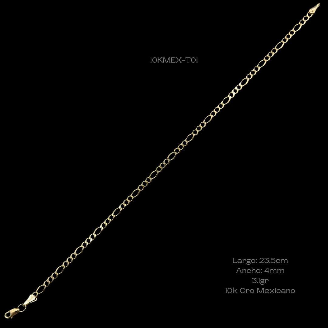 Tobillera de oro 10k Mexicano con tejido cartier. Medidas: 23.5cm de largo y 4mm de ancho. Gramaje: 3.1gr. Precio sujeto a las cotizaciones diarias del oro.