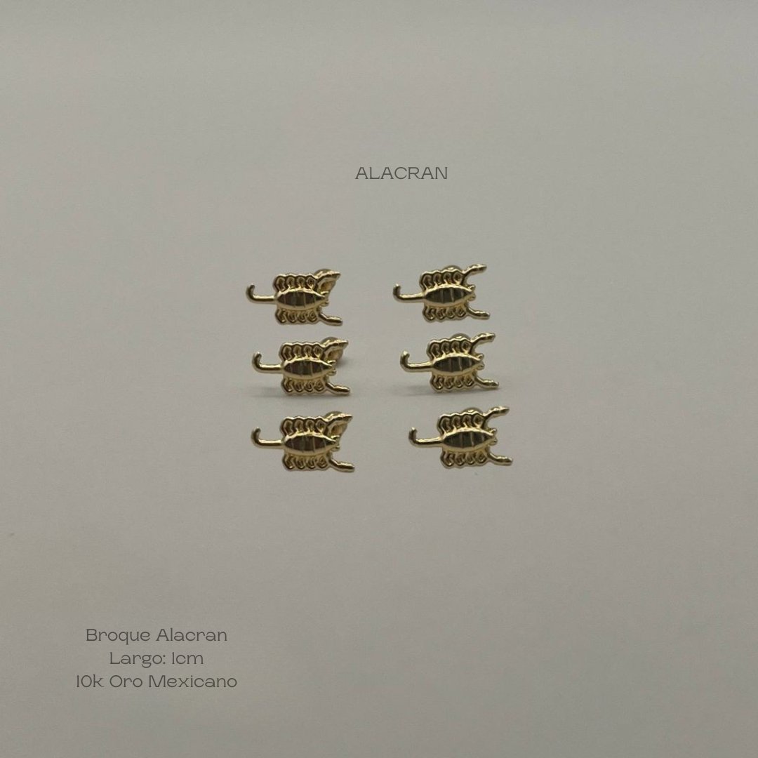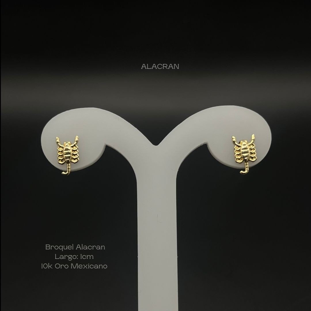 Broquel de 10k Mexicano con diseño alacrán de 1cm de largo. Precio sujeto a las cotizaciones diarias del oro.