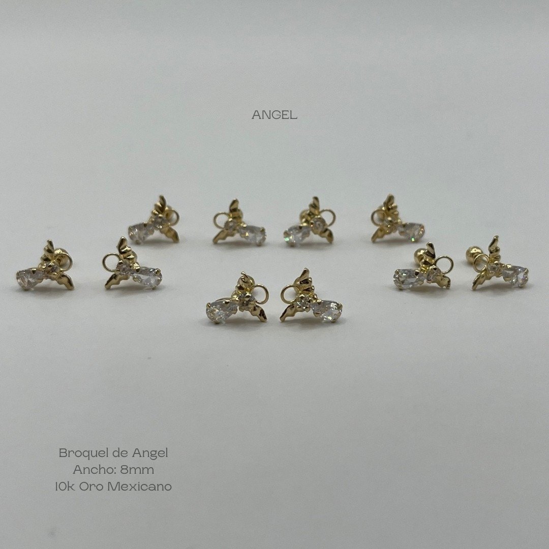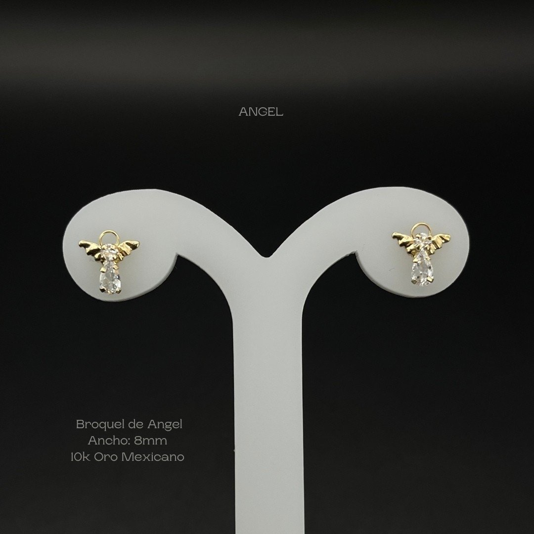 Broquel de 10k Mexicano con diseño de Angelito con incrustación de zirconia, de 8mm de ancho. Precio sujeto a las cotizaciones diarias del oro.