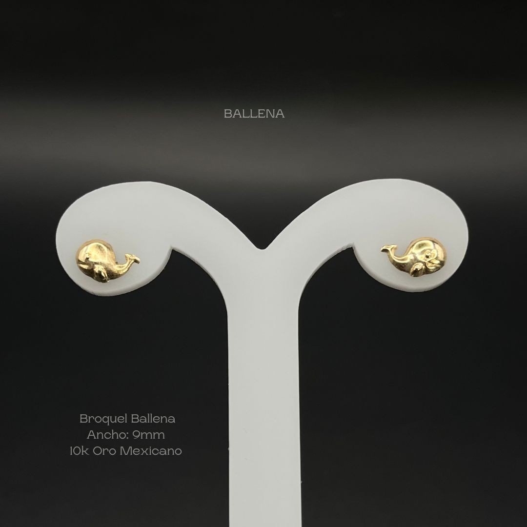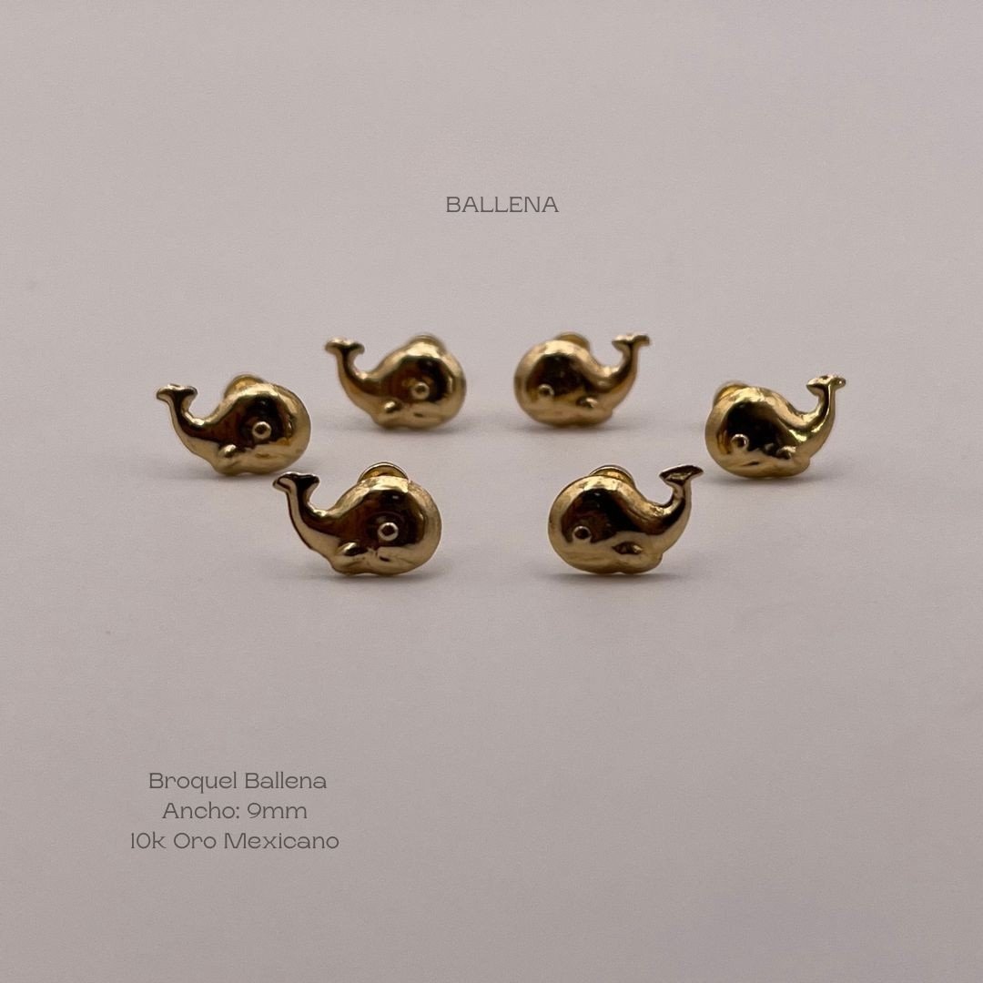 Broquel de 10k Mexicano con diseño de ballena de 9mm de ancho. Precio sujeto a las cotizaciones diarias del oro.