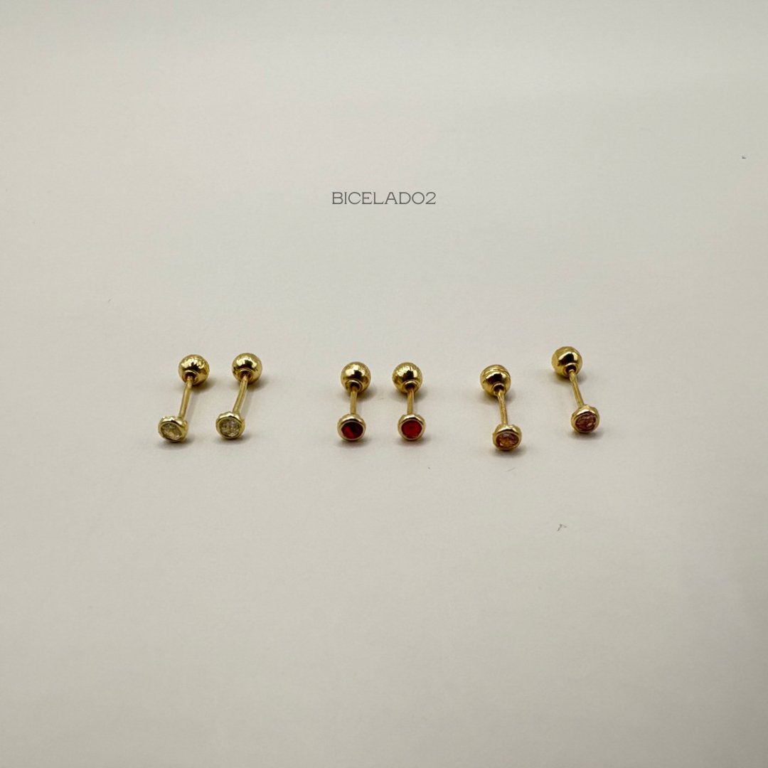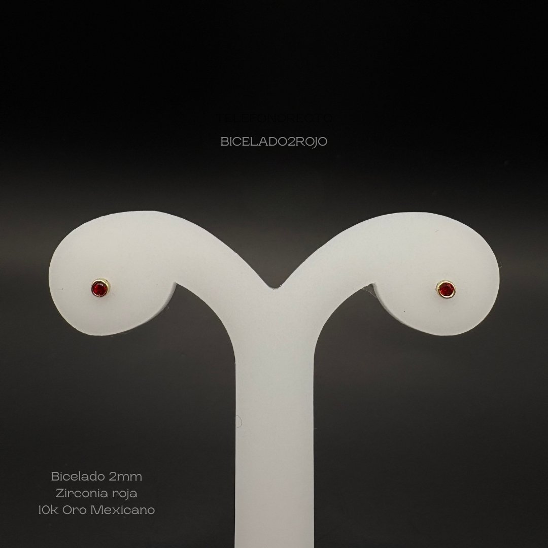 Broquel de 10k Mexicano con diseño bicelado con zirconia de 2mm en color rojo. Precio sujeto a las cotizaciones diarias del oro.