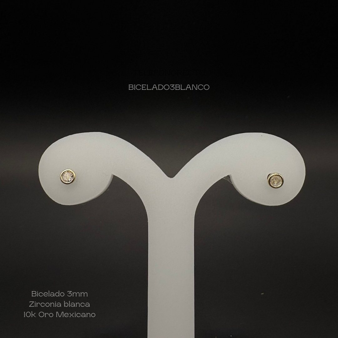Broquel de 10k Mexicano con diseño bicelado con zirconia de 3mm en color blanco. Precio sujeto a las cotizaciones diarias del oro.