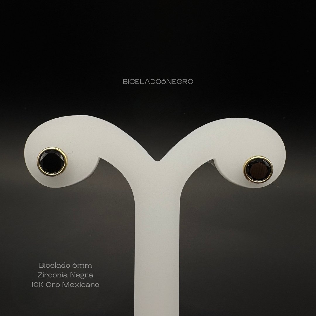 Broquel de 10k Mexicano con diseño bicelado con zirconia de 6mm en color negro. Precio sujeto a las cotizaciones diarias del oro.
