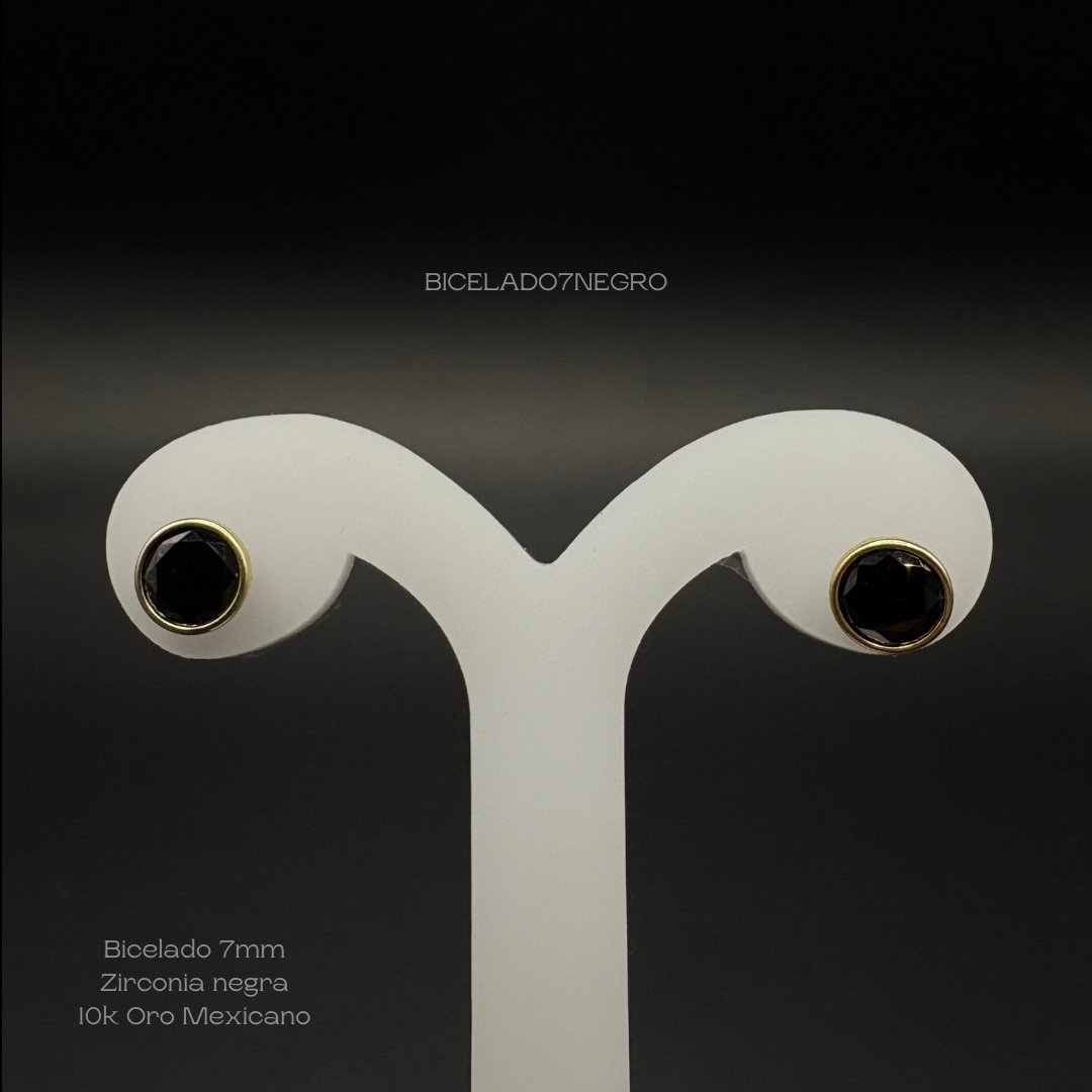 Broquel de 10k Mexicano con diseño bicelado con zirconia de 7mm en color negro. Precio sujeto a las cotizaciones diarias del oro.