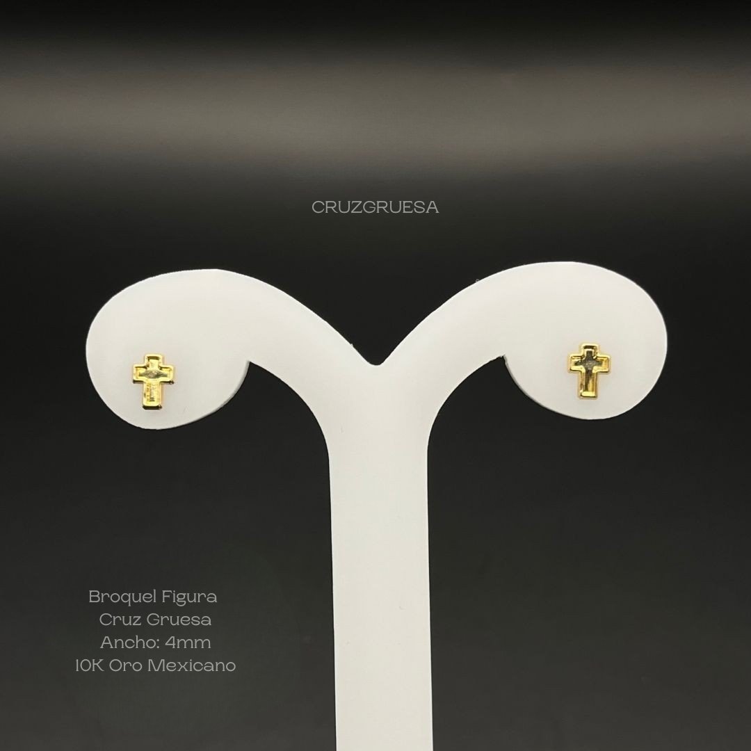 Broquel de 10k Mexicano con diseño de cruz gruesa con borde de 4mm de ancho. Precio sujeto a las cotizaciones diarias del oro.
