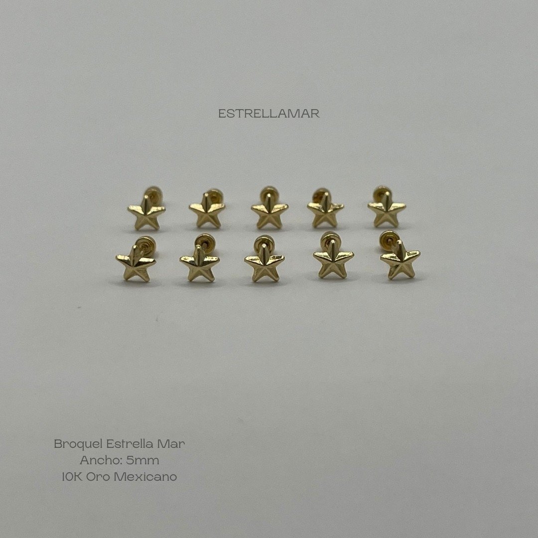 Broquel de 10k Mexicano con diseño de estrella de mar, de 5mm de ancho. Precio sujeto a las cotizaciones diarias del oro.