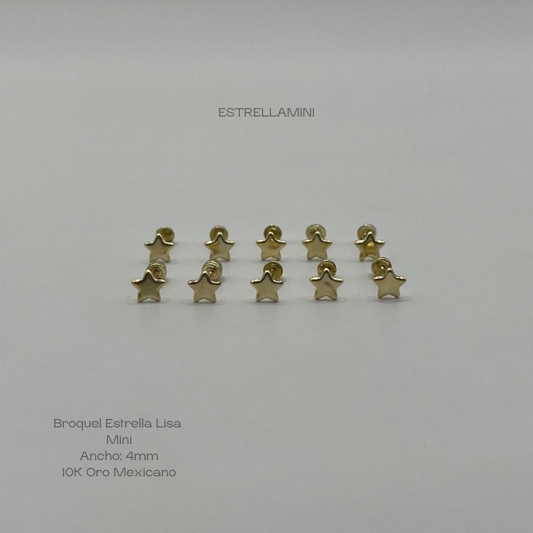 Broquel de 10k Mexicano con diseño de estrella lisa mini, de 4mm de ancho. Precio sujeto a las cotizaciones diarias del oro.