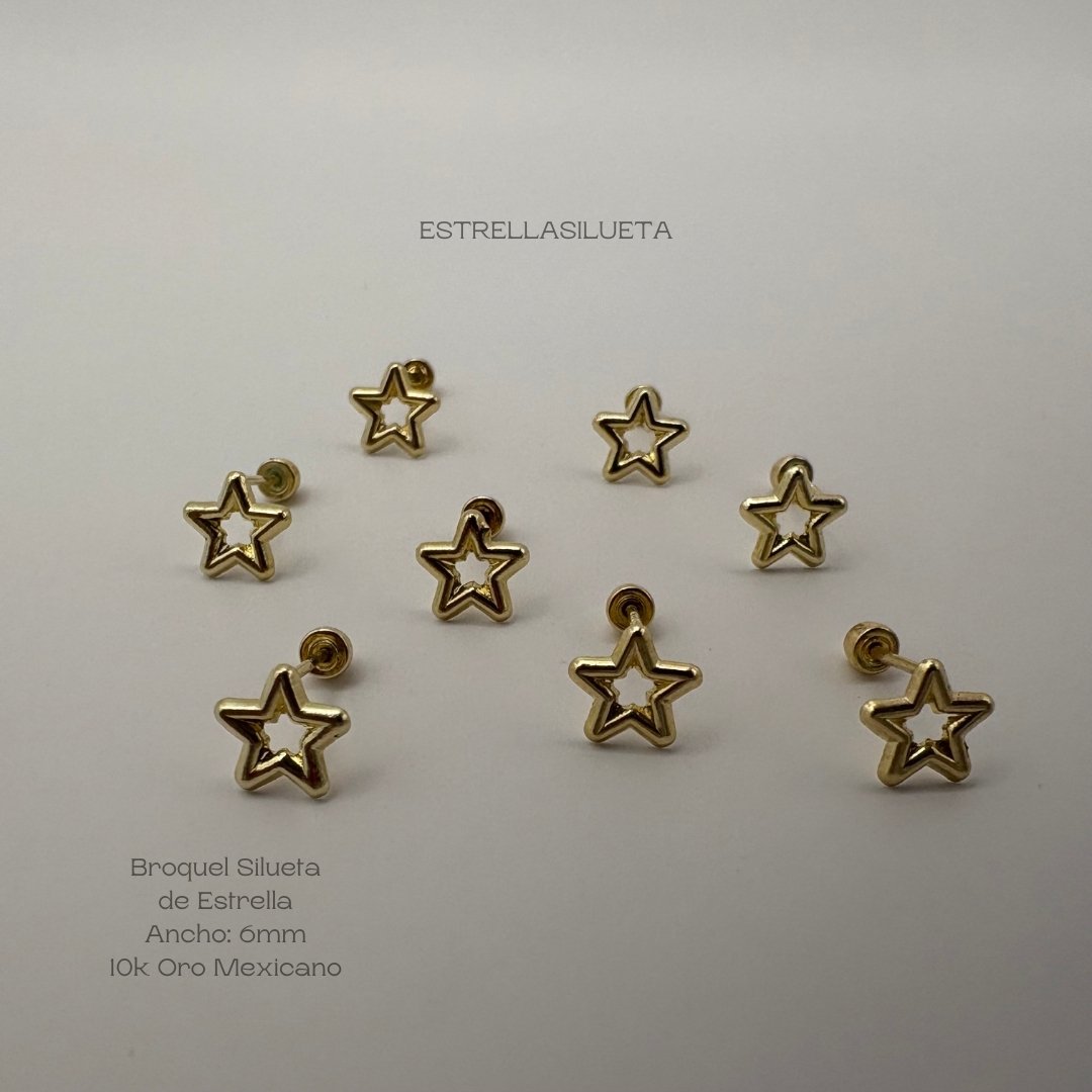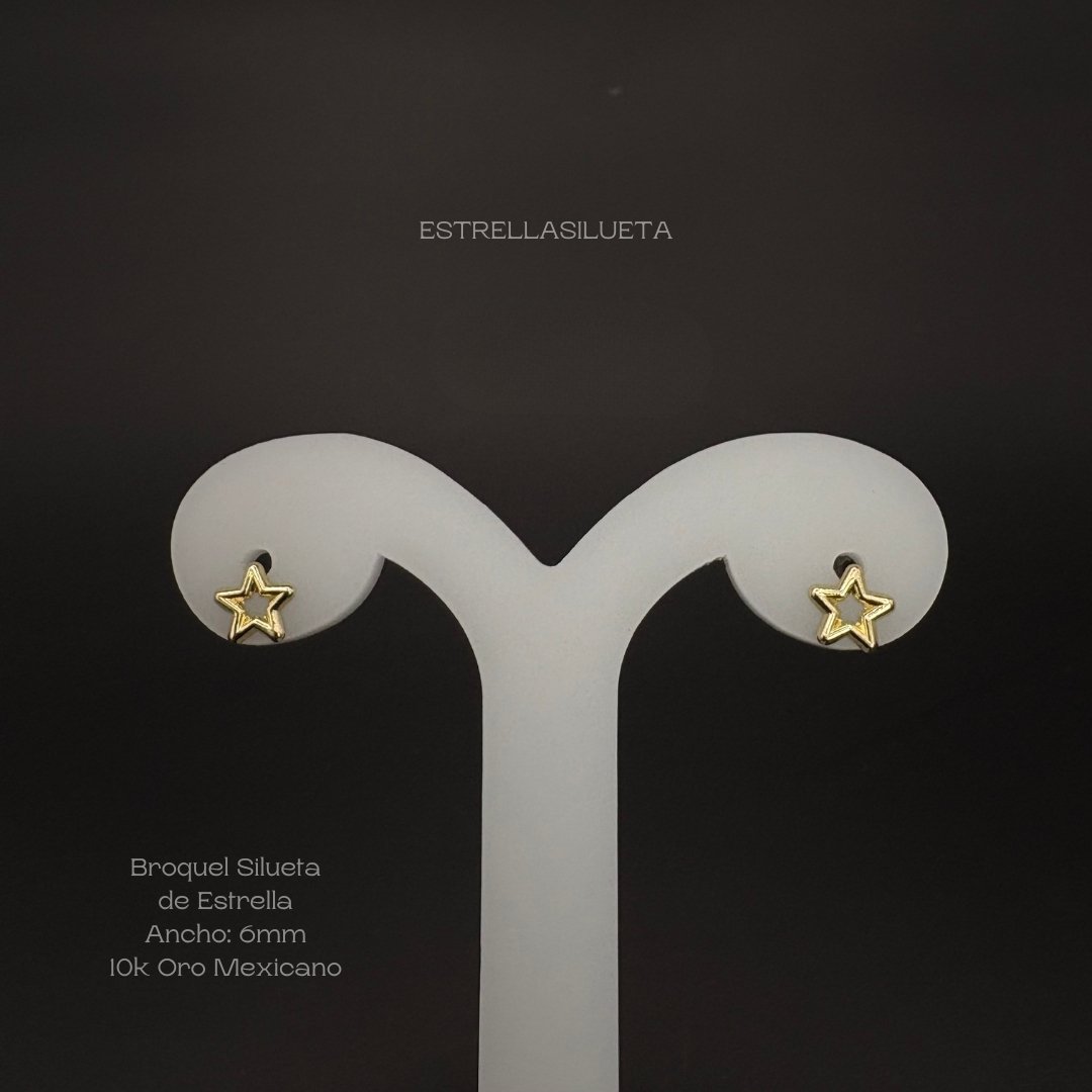 Broquel de 10k Mexicano con diseño de silueta de estrella de 6mm. Precio sujeto a las cotizaciones diarias del oro.