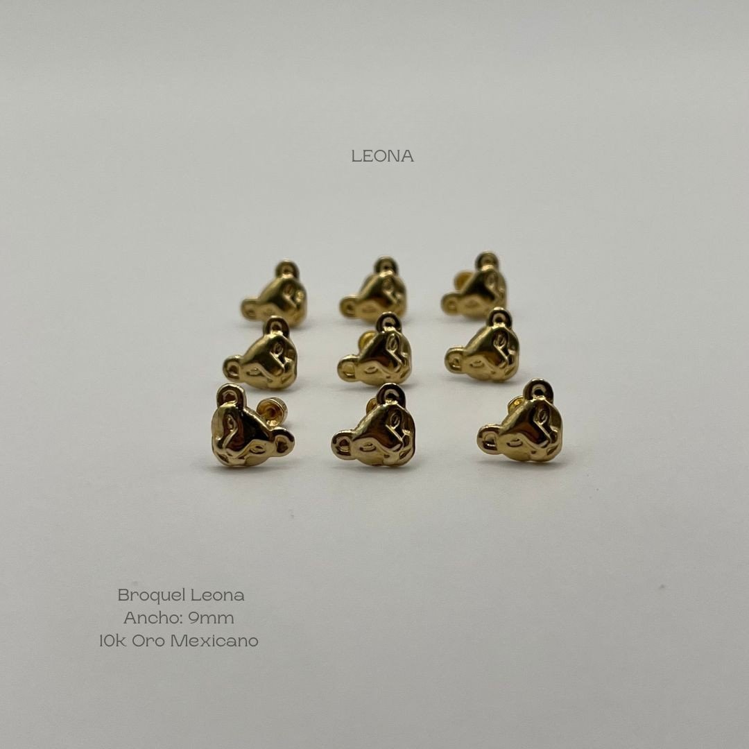 Broquel de 10k Mexicano con diseño de leona de 9mm de ancho. Precio sujeto a las cotizaciones diarias del oro.