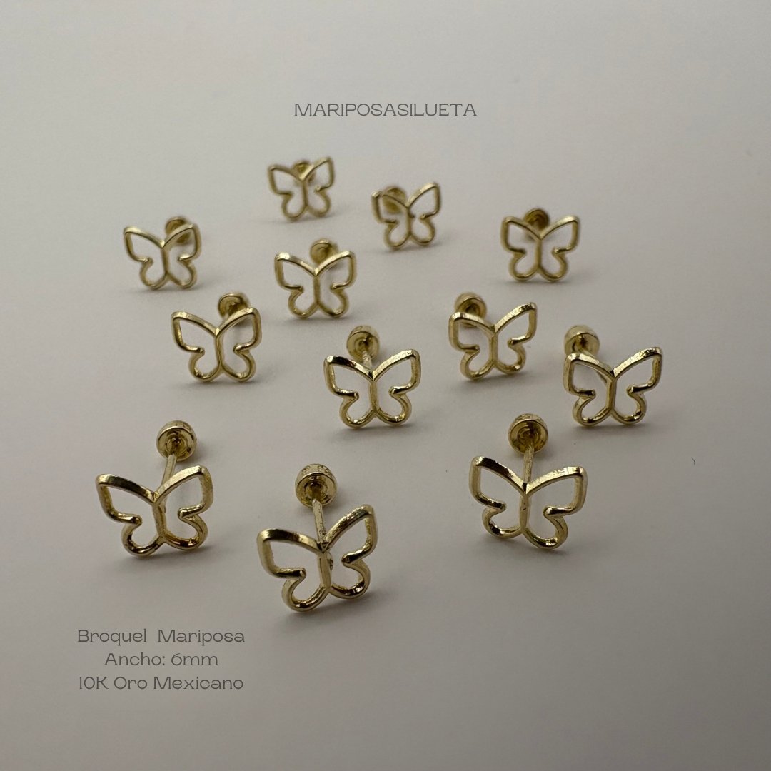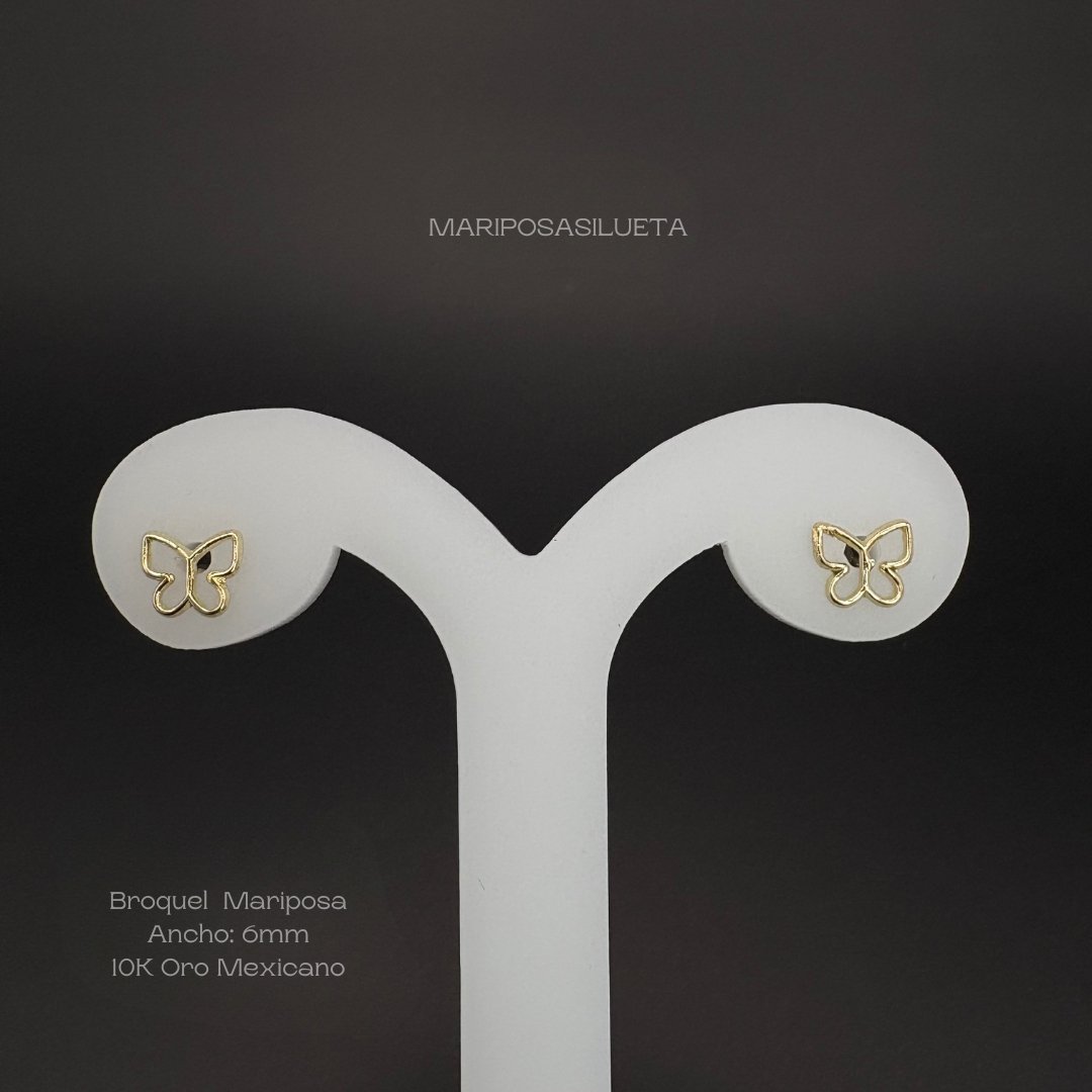 Broquel de 10k Mexicano con diseño de silueta de mariposa de 6mm. Precio sujeto a las cotizaciones diarias del oro.
