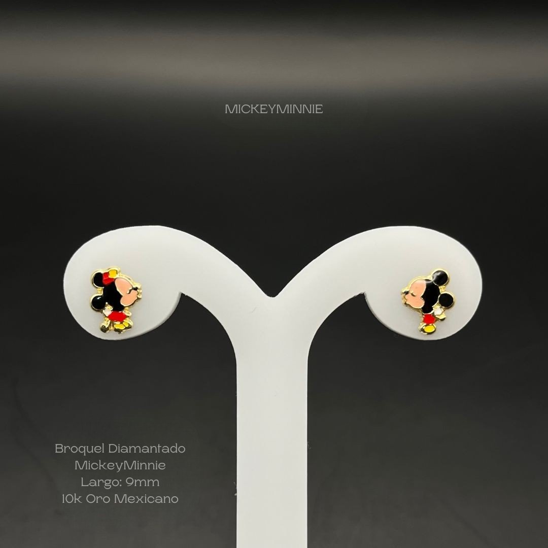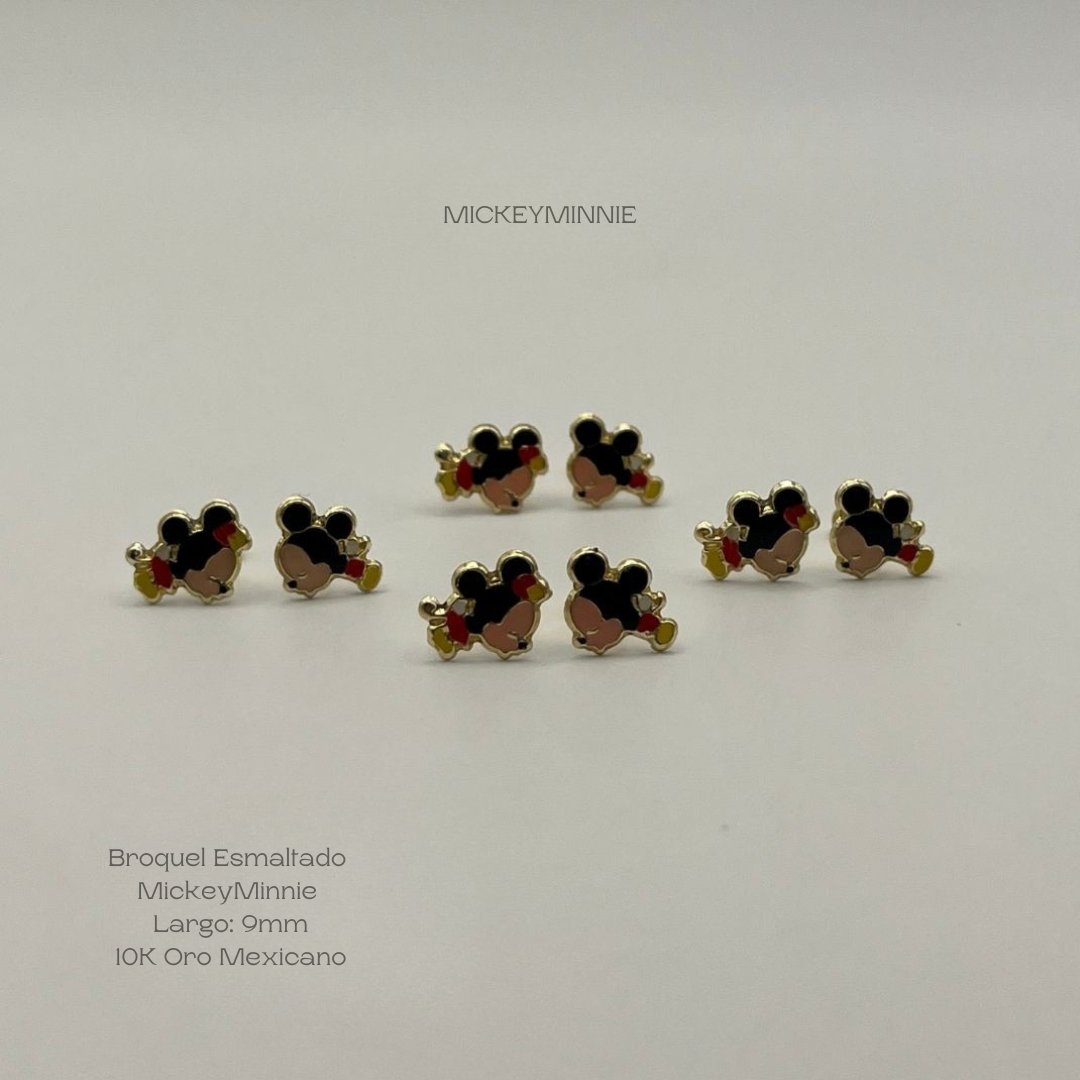 Broquel de 10k Mexicano con diseño esmaltado de Mickey y Minnie dandose un beso de 9mm. Precio sujeto a las cotizaciones diarias del oro.