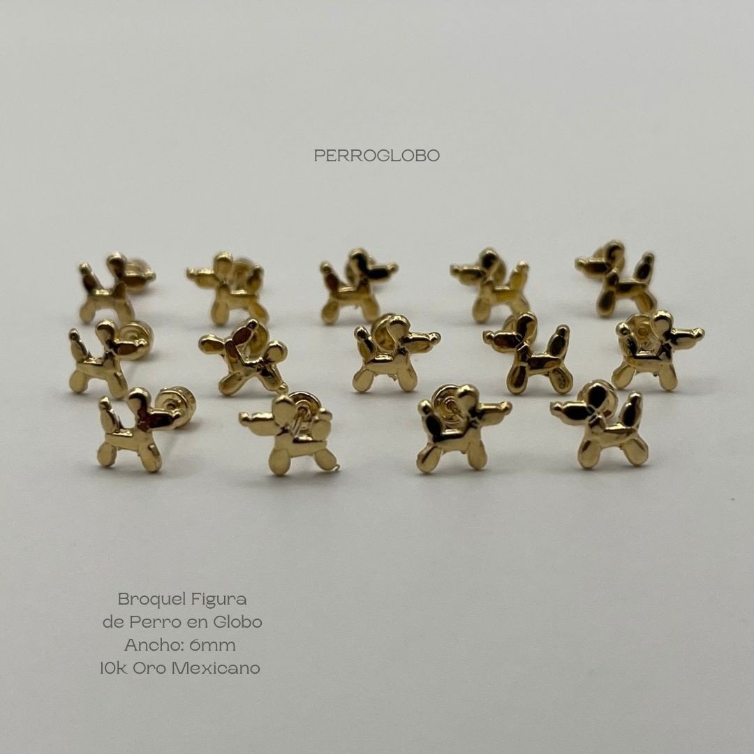 Broquel de 10k Mexicano con diseño de figura de perro en globo de 6mm de ancho. Precio sujeto a las cotizaciones diarias del oro.