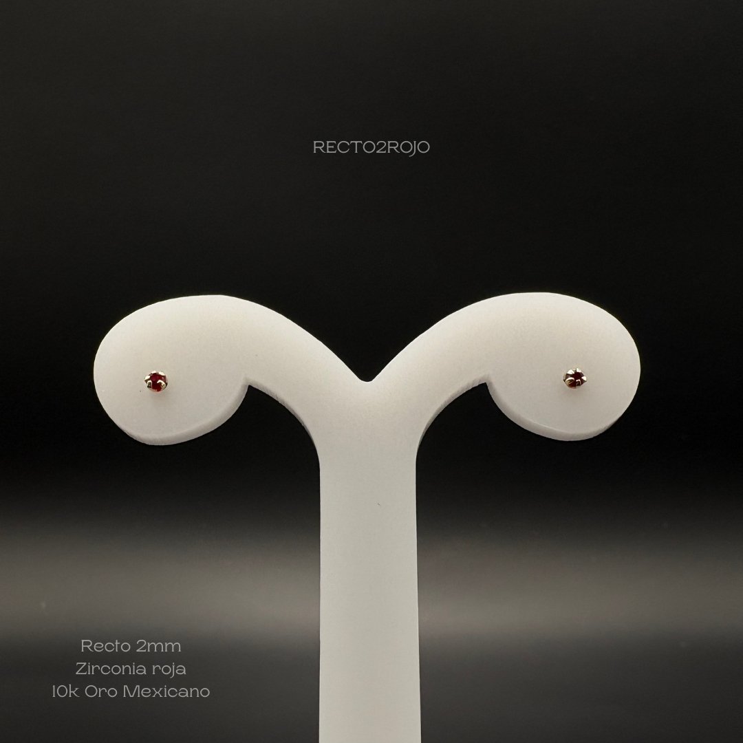 Broquel de 10k Mexicano con diseño recto zirconia de 2mm en color rojo. Precio sujeto a las cotizaciones diarias del oro.
