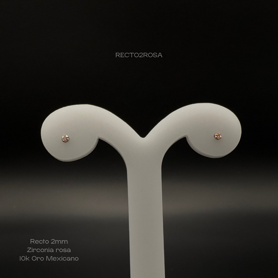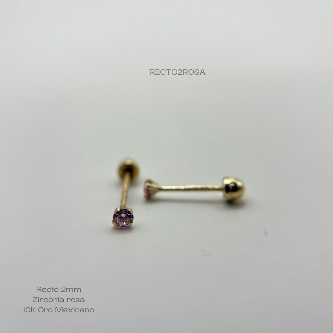 Broquel de 10k Mexicano con diseño recto zirconia de 2mm en color rosa. Precio sujeto a las cotizaciones diarias del oro.