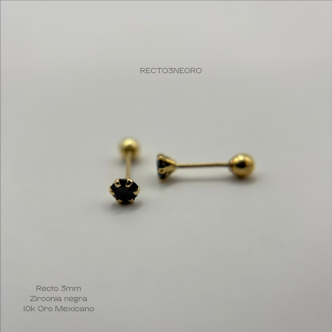 Broquel de 10k Mexicano con diseño recto zirconia de 3mm en color negro. Precio sujeto a las cotizaciones diarias del oro.