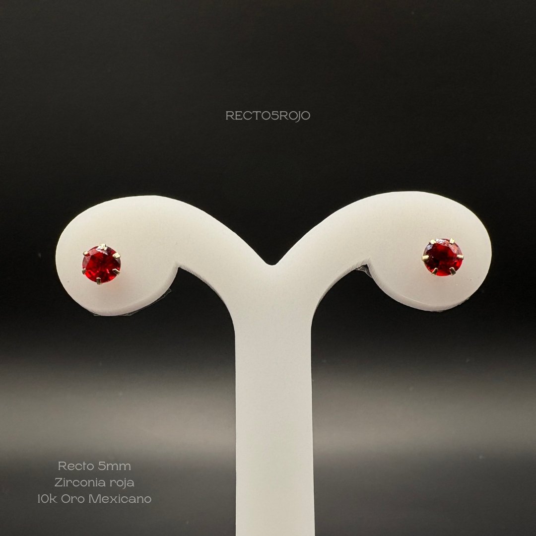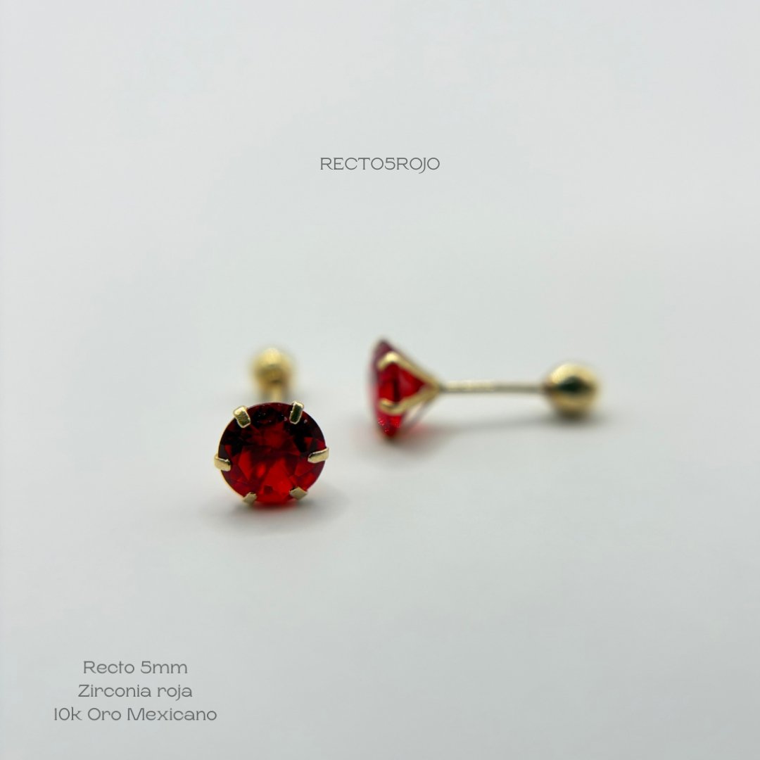Broquel de 10k Mexicano con diseño recto zirconia de 5mm en color rojo. Precio sujeto a las cotizaciones diarias del oro.