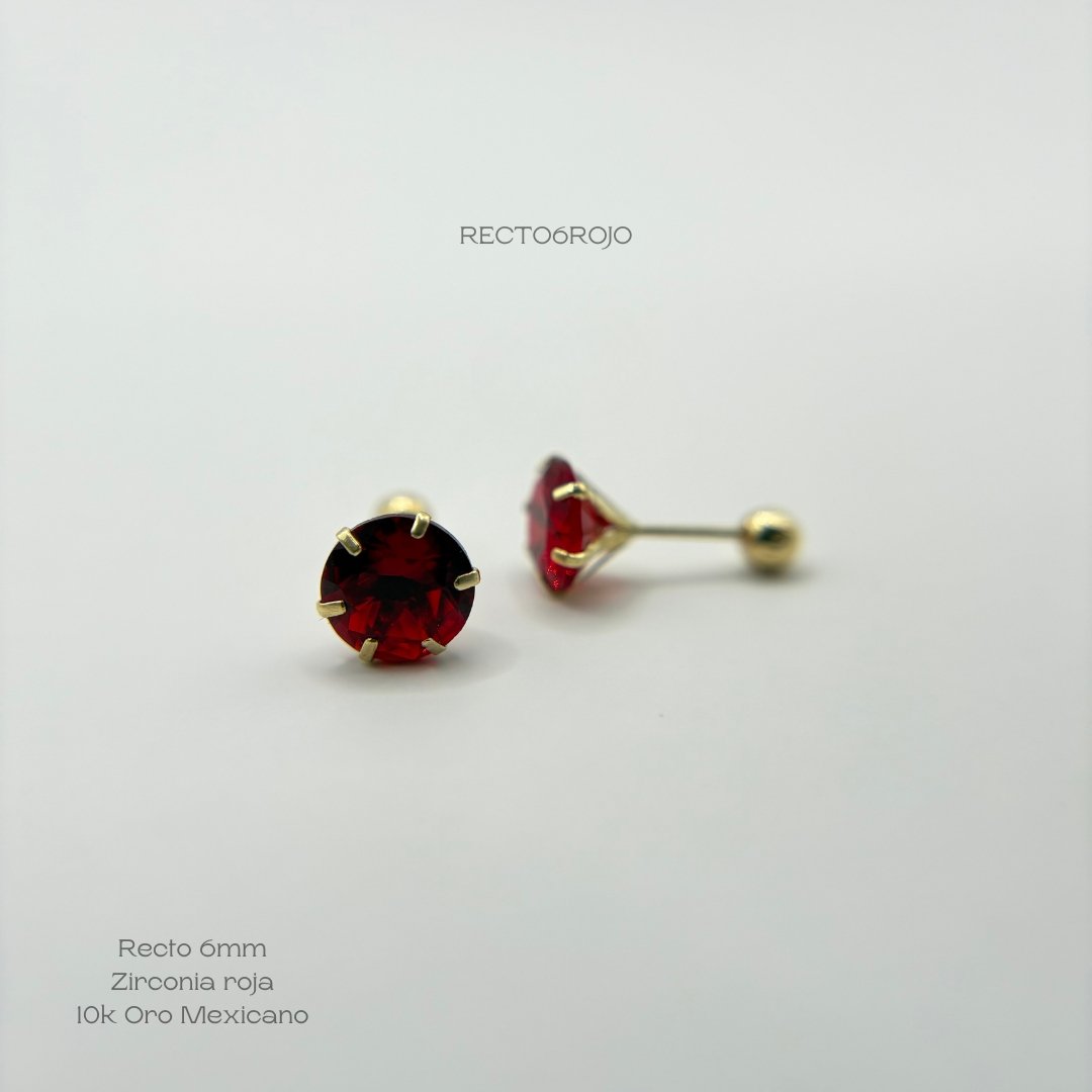 Broquel de 10k Mexicano con diseño recto zirconia de 6mm en color rojo. Precio sujeto a las cotizaciones diarias del oro.
