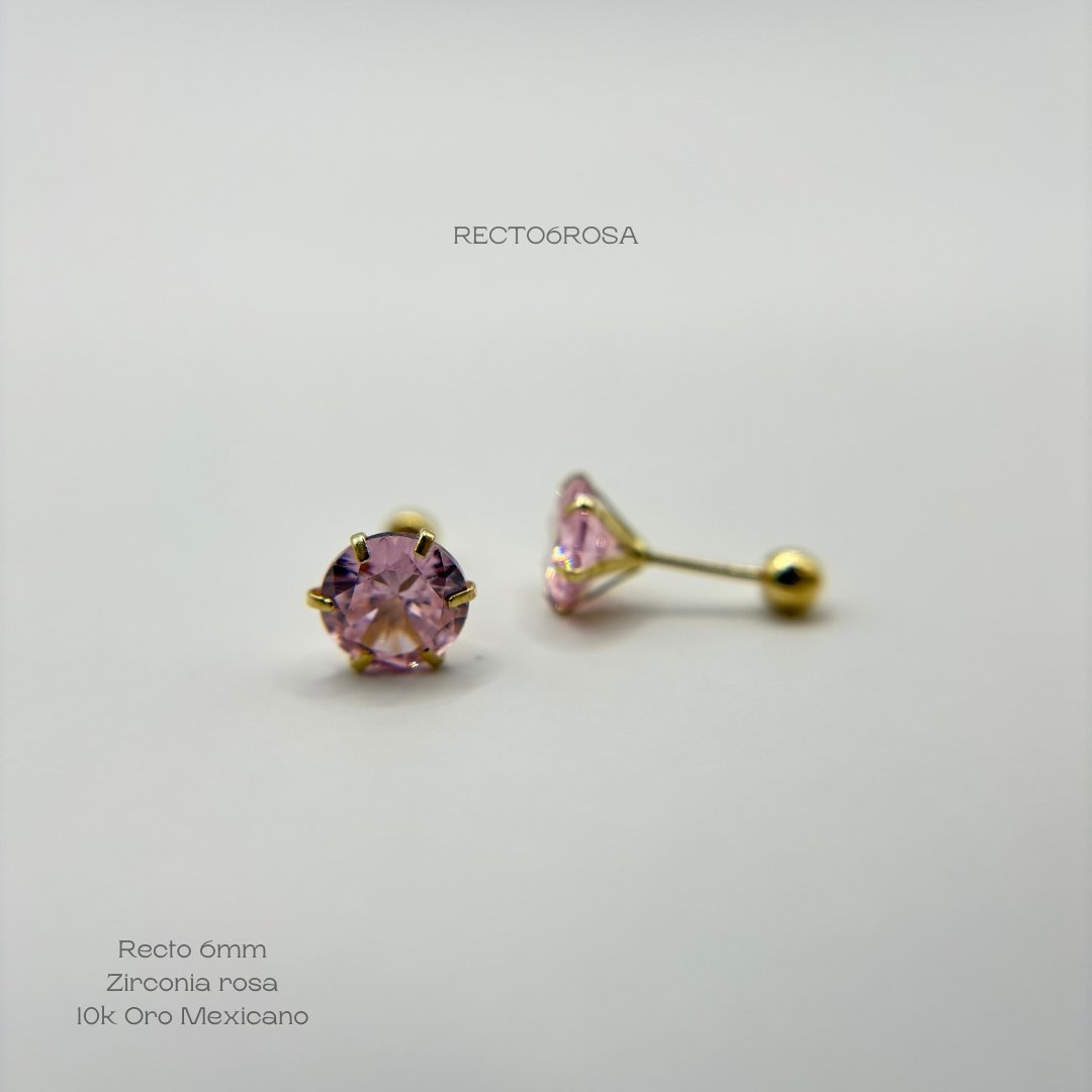 Broquel de 10k Mexicano con diseño recto zirconia de 6mm en color rosa. Precio sujeto a las cotizaciones diarias del oro.