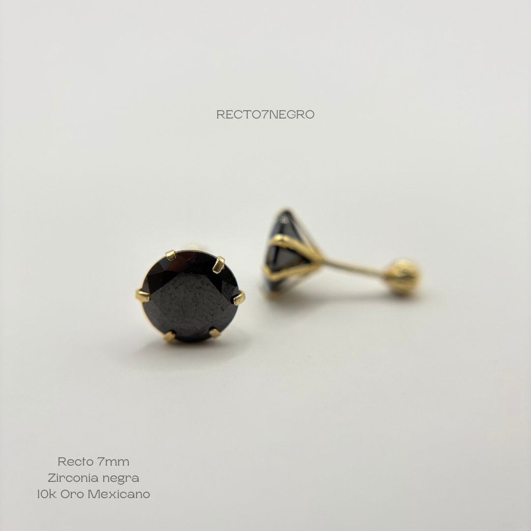 Broquel de 10k Mexicano con diseño recto zirconia de 7mm en color negro. Precio sujeto a las cotizaciones diarias del oro.