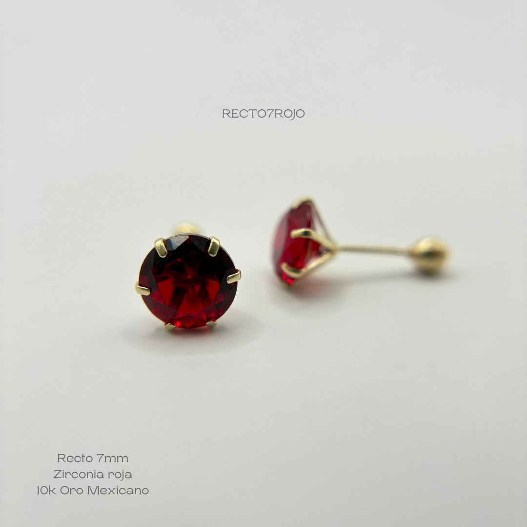 Broquel de 10k Mexicano con diseño recto zirconia de 7mm en color rojo. Precio sujeto a las cotizaciones diarias del oro.