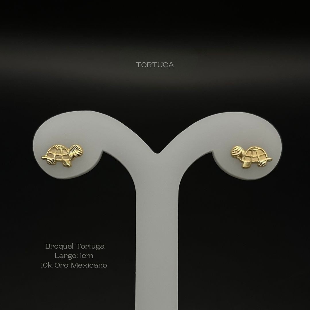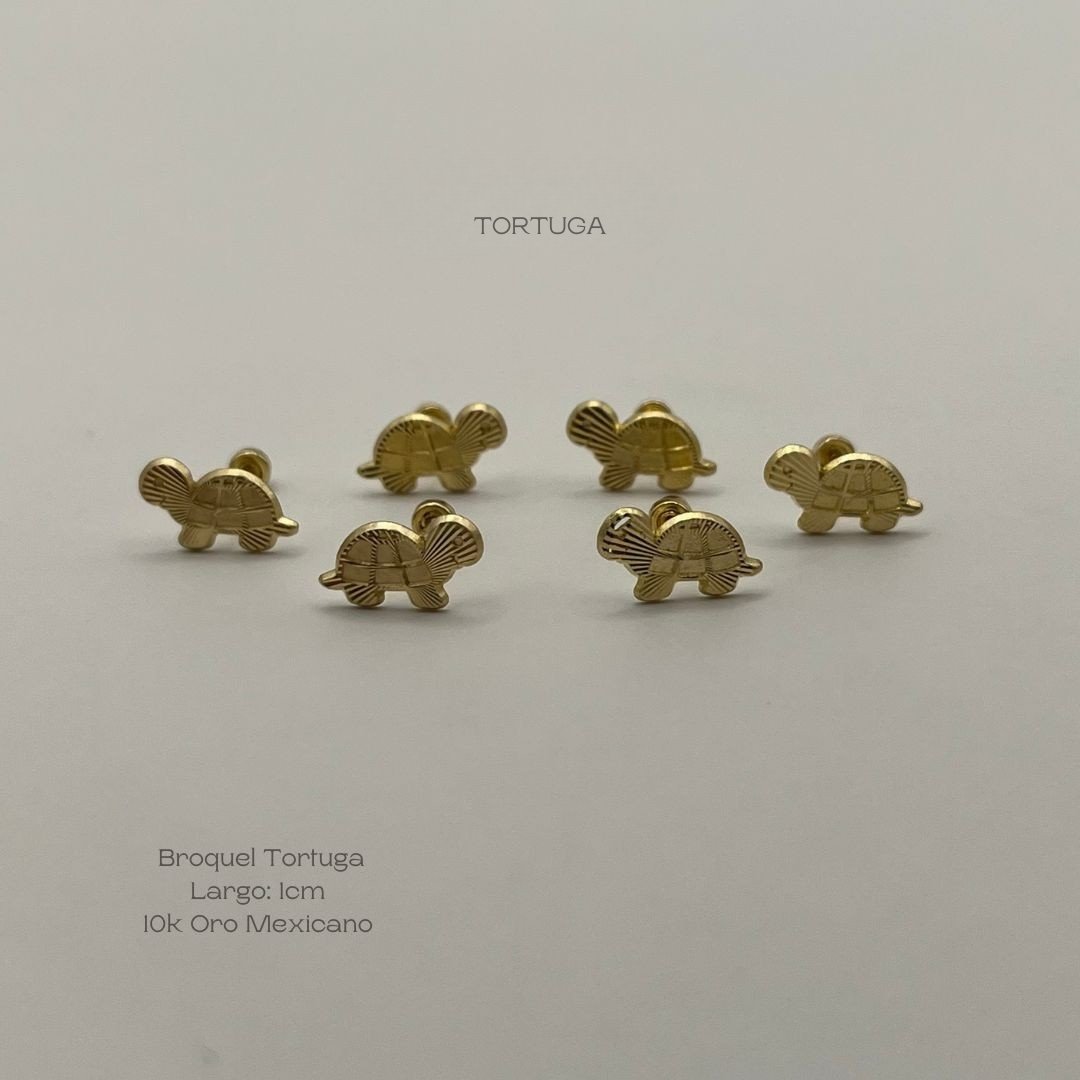 Broquel de 10k Mexicano con diseño de tortuga diamantada de 1cm de ancho. Precio sujeto a las cotizaciones diarias del oro.
